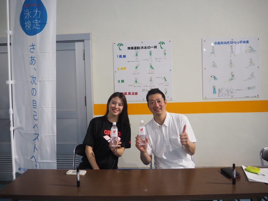 令和6年5月12日(日)長崎県佐世保市温水プールにてオリンピアンの宮下純一さんと大本里佳さんをゲストに迎えてニチレイチャレンジ特別泳力検定会が開催されました。