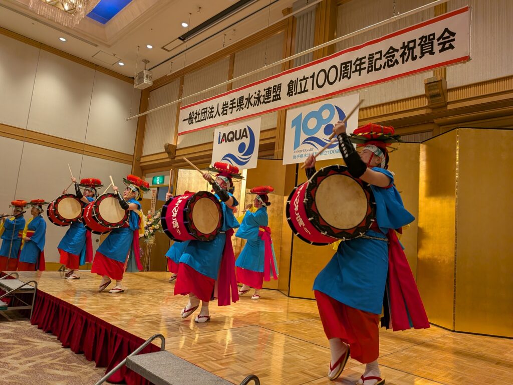 質疑応答では、全国中学校体育大会の在り方について等の積極的な意見交換が行われました。翌日は、岩手県水泳連盟創立100周年式典が盛大に執り行われました。