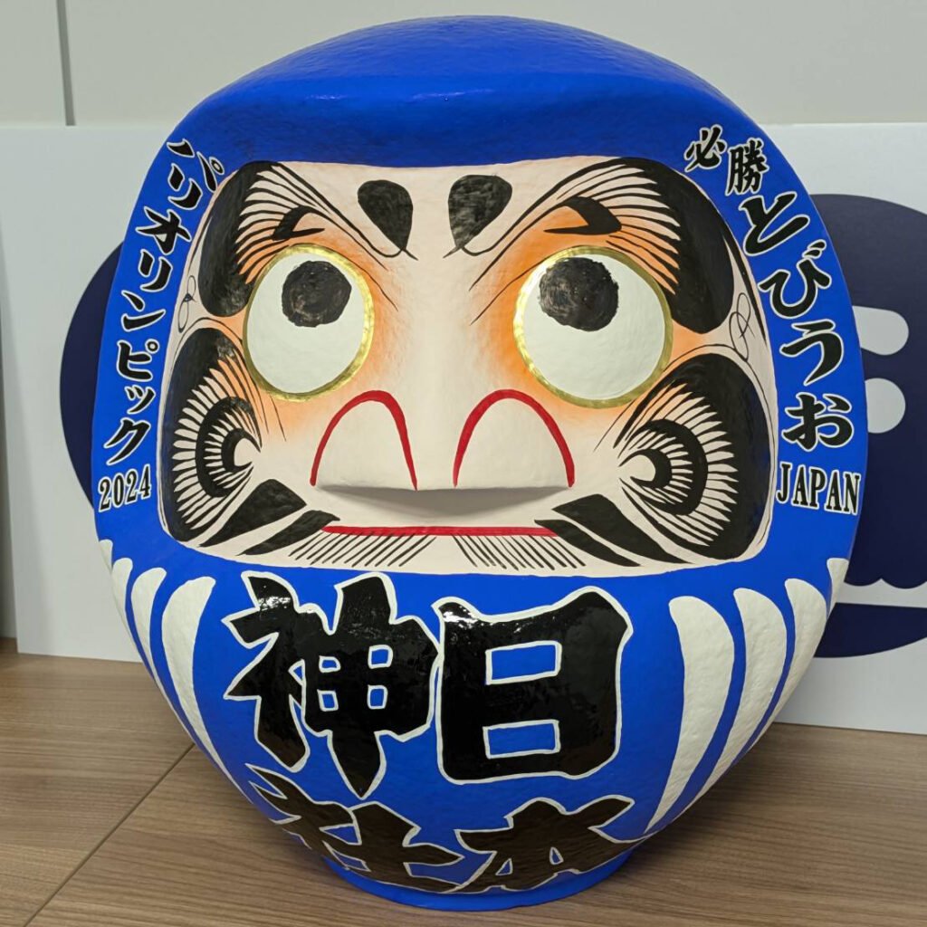 その日本神社さまより、2012年のロンドン五輪からリオデジャネイロ五輪、東京五輪と続き、今年のパリ五輪でも必勝祈願の青だるまをいただきました。