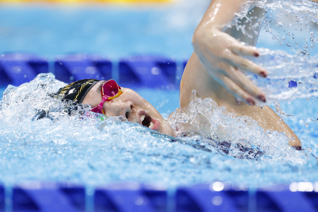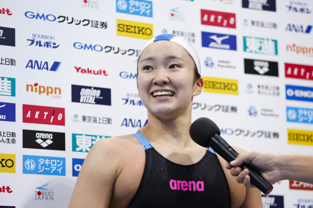 女子400m自由形は、前半はレースをリードしていた久野日菜乃(田尻水泳連盟/大阪公立大学)をラスト50mで逆転した難波実夢(JSS東京)が4分03秒18で優勝を飾った。