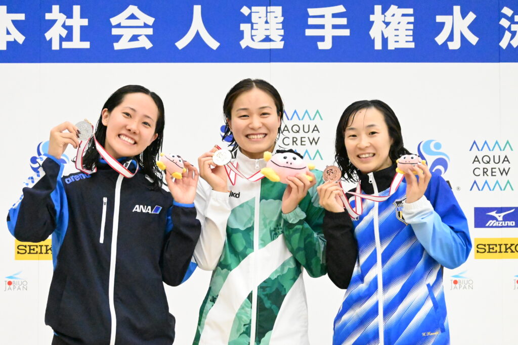 女子200m個人メドレーを制したのは、初日の200m自由形と背泳ぎ、400m個人メドレーで優勝した小堀倭加(あいおいニッセイ/相模原市水泳協会)。2分14秒76で金メダルを勝ち取ると、400m自由形も4分14秒06で危なげない勝利を収め、今大会5冠を達成した。
