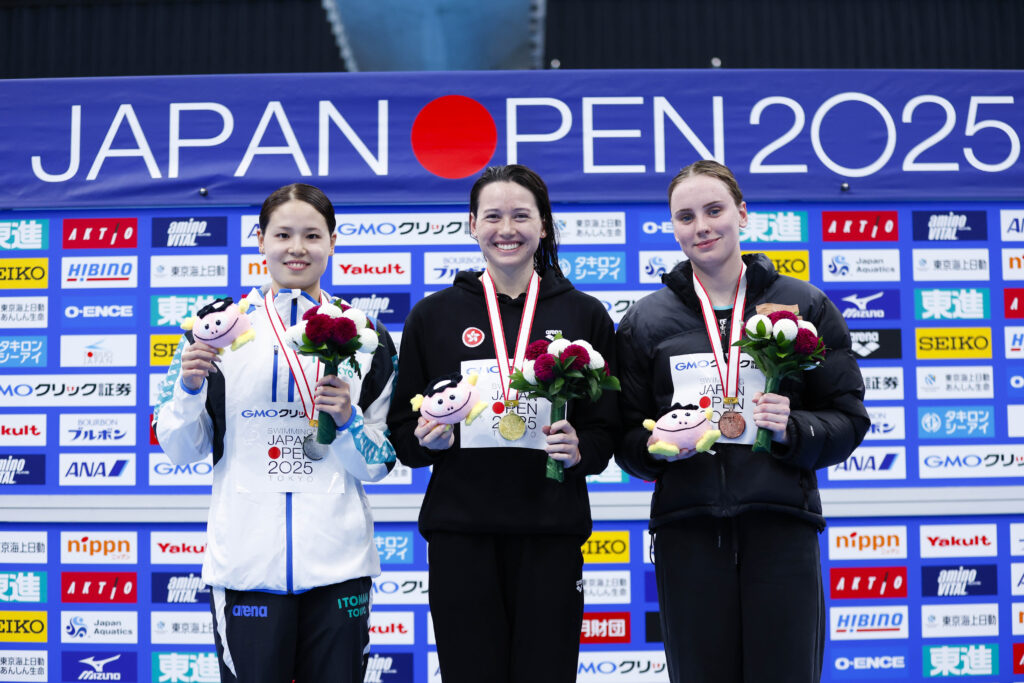女子100m自由形は、好記録を持つ海外勢が強さを見せる。東京五輪、パリ五輪の2大会続けてメダルを獲得したSiobhan Haughey(香港)が前半から他を圧倒。前半から周囲に1秒近くの差を付けてフィニッシュ。53秒04で優勝を果たす。