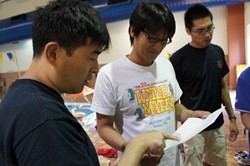 JISS(国立スポーツ科学センター)から今合宿の医科学サポートに来て下さっている三名。左から足立さん、鈴木さん、窪さん。なにやら難しい話をしています。