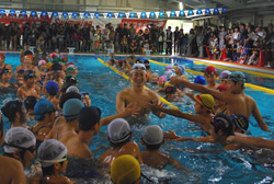 そんな柴田さんが子どもたちに贈る言葉は「うまくなるには水泳を好きになること」。「水泳が嫌いになったら目標や夢をかなえられない。好きで頑張り続ければうまくいく」という。一線を退いた柴田さんが今、頑張り続けているのは、この日のような水泳指導。「水泳嫌いの子どもを1人でも減らしたい。そのために全国を回っています」。柴田さんは水泳で知り合った多くの仲間たちと協力しながら、笑顔で泳ぐ子どもたちの輪を日本中に広げている。 |