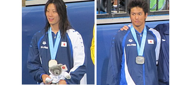 女子50m背泳ぎは、寺川綾選手(ミズノスイムチーム)が28秒04で2位、男子50m背泳ぎでは、古賀淳也選手(スウィン埼玉)が24秒86で優勝を飾りました。また、男子4×200mリレーでは、接戦の末7分11秒05で2位となり、銀メダルを獲得しました。