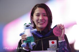 女子の400m個人メドレーでは、大橋悠依が世界女王のカティンカ・ホッスー(ハンガリー)に、背泳ぎまで食らいつく積極性を見せる。平泳ぎで少し離されてしまい、さらには平泳ぎ、自由形が得意な叶詩文(中国)が一気に追い上げて、ラスト25mで競り合いに。惜しくも銀メダル争いには敗れたものの、2大会連続でのメダル獲得となる、4分32秒33で3位銅メダルを獲得した。