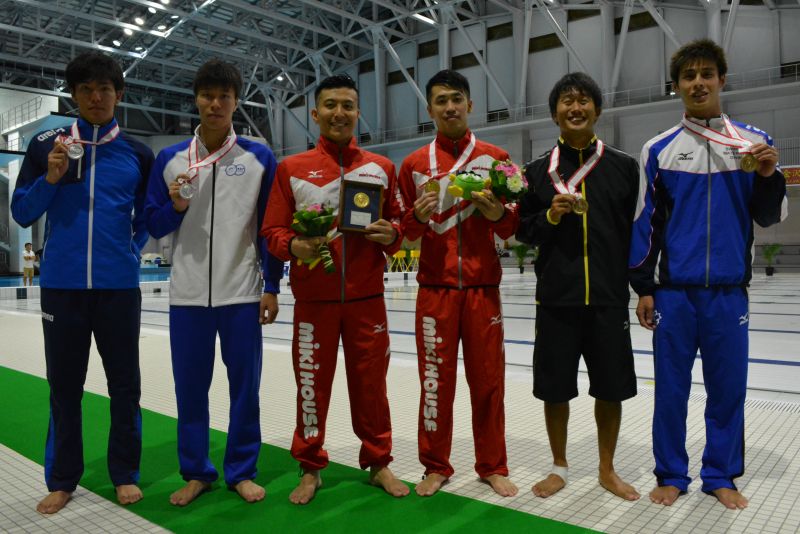 男子1m飛板飛込決勝は、荒木宥図(NSP)がで3連覇を成し遂げる。「1mのベストスコアでしたので、3mに向けても自信になりました」と3m飛板飛込に向けて気持ちを高めていた。