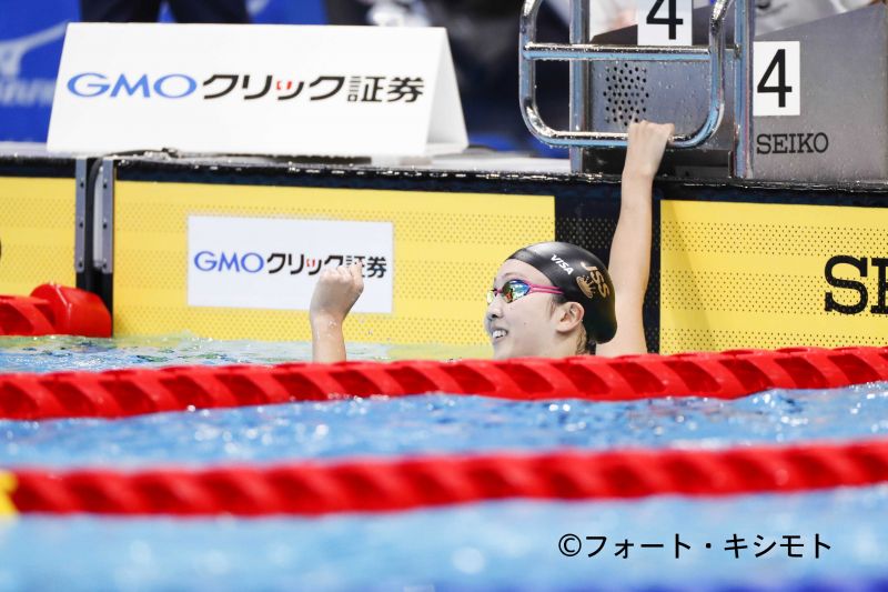 そのほか、男子800m自由形では竹田涉瑚(オーエンス)が7分55秒15で優勝。女子50m自由形は五十嵐千尋(T&G/JSS)が初優勝。男子は塩浦が21秒96で「ホッとした」という優勝を飾る。