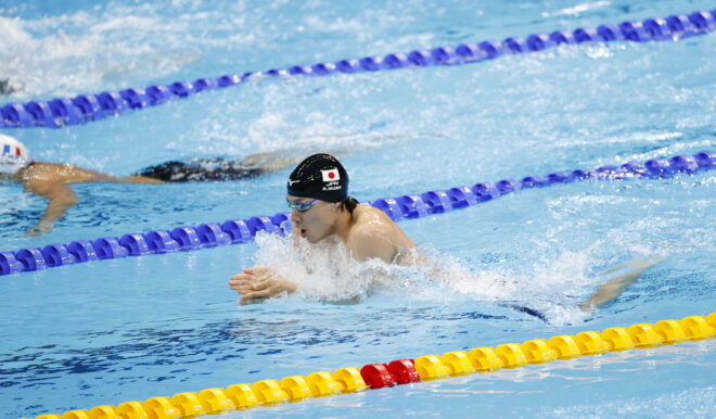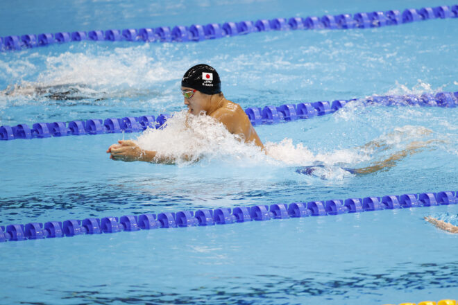 男子200m平泳ぎの準決勝では、好調の武良竜也が2分08秒27の全体6番手で決勝進出を決めた。佐藤翔馬は2分09秒04の10位という結果となった。