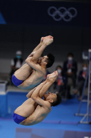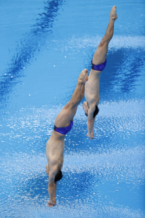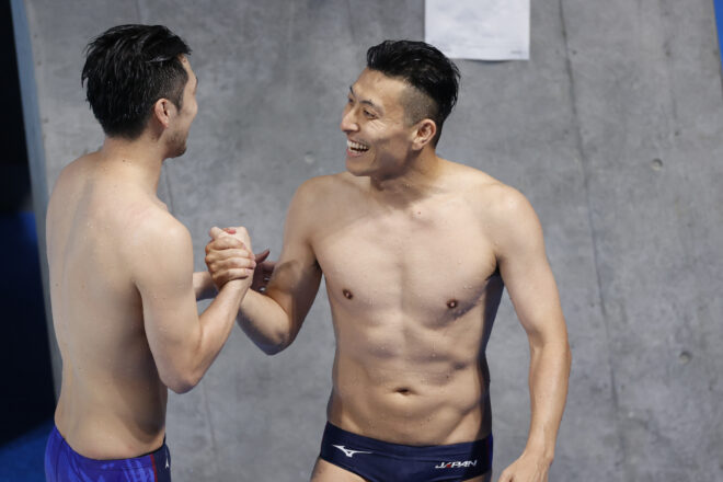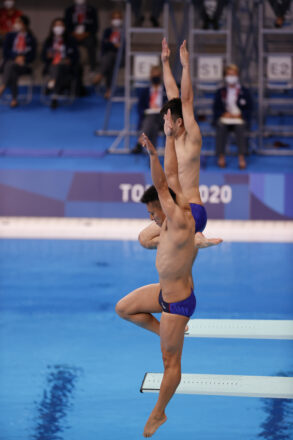 男子3mシンクロの決勝に、寺内健と坂井丞のベテランコンビが登場。