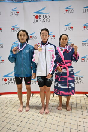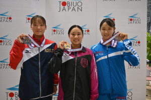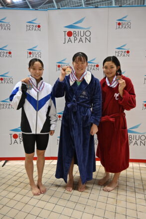 ほか、女子200m平泳ぎでは2分27秒36で松本悠里(須磨学園)、女子50m自由形では25秒74で大嶋千桜(四條畷学園)と、それぞれ1年生が優勝。将来が楽しみなレースが続いた。