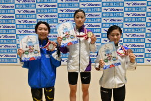 15〜16歳区分女子200m背泳ぎは、水野柚希(スウィン大教/栄東)が100mを折り返してから強さを見せ、2分12秒18の大会新記録で優勝を果たす。