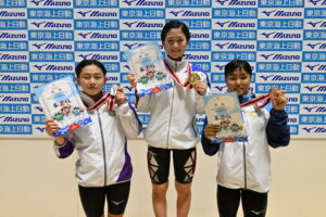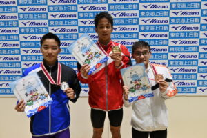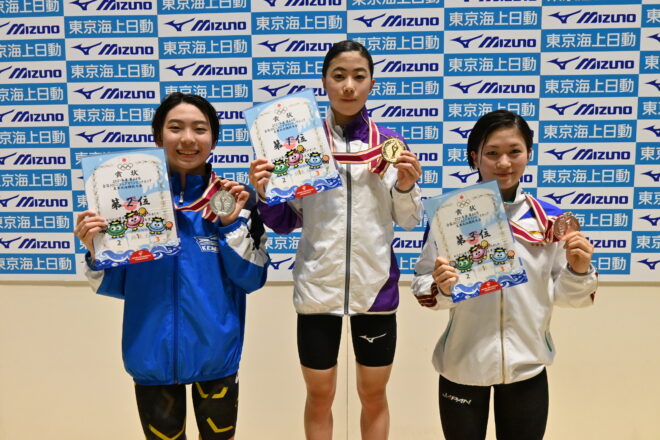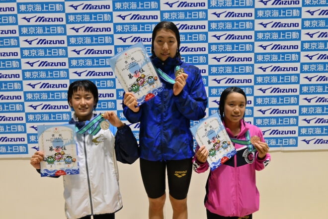 同区分女子100m平泳ぎは、髙橋陽向(サギヌマSC鷺沼)が前半から飛び出して31秒86でターン。後半に入って加藤心冨(スウィン鴻巣/春日部共栄)も追い上げるが、髙橋が逃げ切って1分08秒29の大会新記録を樹立して優勝。加藤も従来の大会記録タイ記録の1分08秒69で2位に入った。