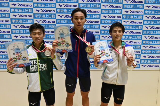 男子も複数人が大会記録を更新する泳ぎを見せてくれた。