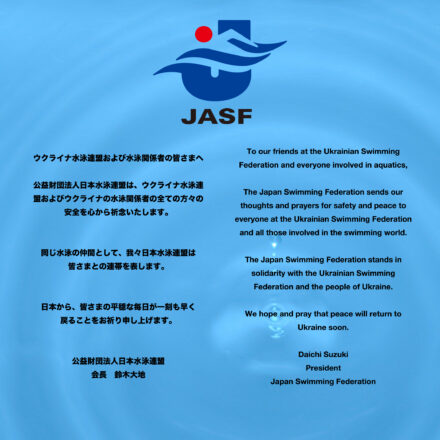 The Japan Swimming Federation stands in solidarity with the Ukrainian Swimming Federation and the people of Ukraine.