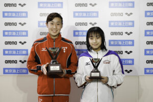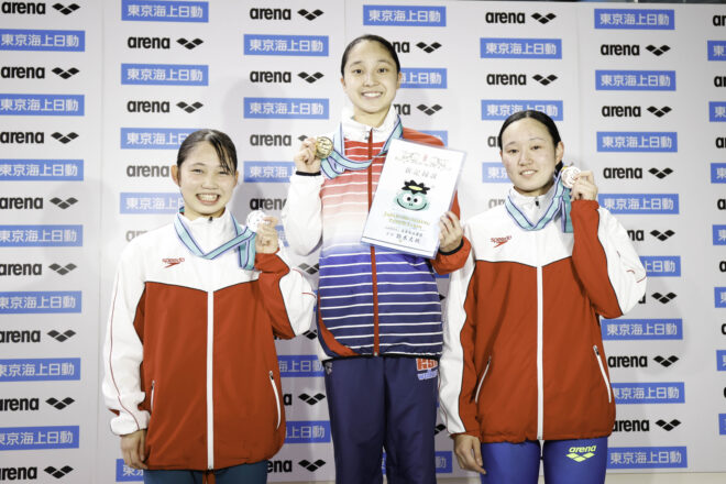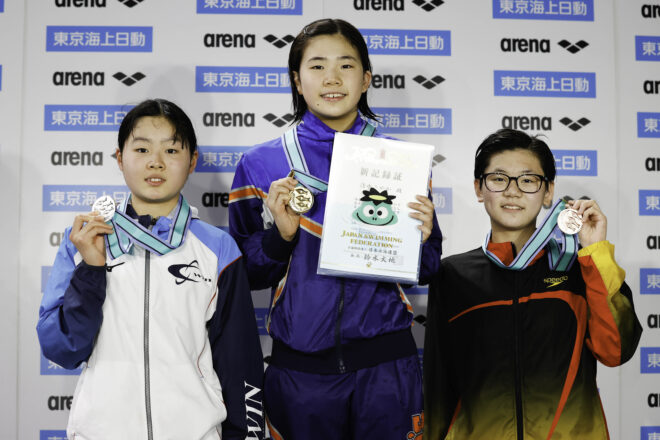 3月27日に東京辰巳国際水泳場で開幕した第44回全国JOCジュニアオリンピックカップ春季水泳競技大会競泳競技。2日目も初日の勢いのまま新記録が続々と誕生した一日となった。