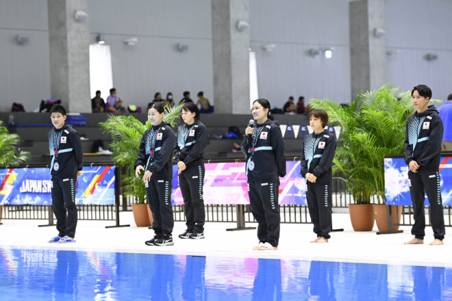 また、決勝競技前には2つの銀メダルを獲得したFINA世界選手権の報告会、及び残念ながら延期となったアジア競技大会、ワールドユニバーシィティゲームズの代表選手たちの認定式を行った。