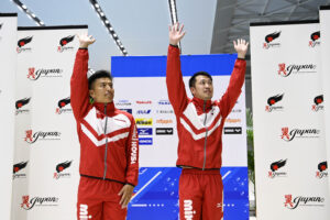 男子は途中で荒木と須山晴貴(栃木県スポーツ協会)のペアがトップに立つも、大ベテランペアである寺内健・坂井丞(ともにミキハウス)のペアが5ラウンド目の5154Bで80ポイントオーバーを獲得。一気に逆転してトータル392.64で優勝をもぎとった。