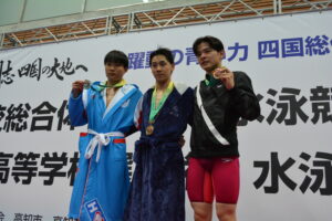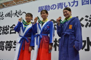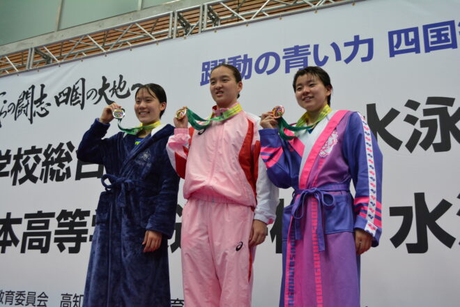 また、女子200mバタフライでは関根倖彩(春日部共栄)が2分12秒00で接戦を制し、男子はラスト50mで伸びを見せた小池貴之(報徳学園)が1分59秒54で優勝。女子100m背泳ぎは1分02秒02で森田眞心(福大附属若葉)が、男子は55秒47で小東真皓(四條畷学園)がそれぞれ優勝を果たした。