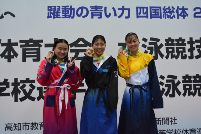 女子50m自由形は、大会記録にあと0秒15にまで迫る25秒34をマークした、2年生の大嶋千桜(四條畷学園)が連覇を達成した。また、男子も高校記録、大会記録の22秒65にあとわずかに迫る、22秒77で重藤流世(四條畷学園)が優勝を飾った。
