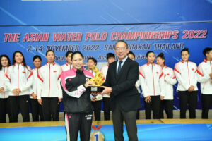 11月7〜13日、タイ・バンコクで開催されたアジア水球選手権2022に、男女とも出場した水球日本代表チーム。全10チームが出場した男子はグループA、Bに別れて予選を行い、女子は6チーム総当たりで予選を行った。