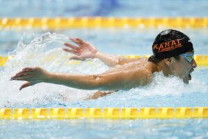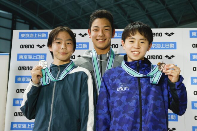 初日に11〜12歳区分で2種目を制した竹野伊織(金井学園SC)が、この日の50mバタフライで予選から25秒54の短水路日本学童新記録を樹立。決勝ではさらに上回る、25秒14にまで記録を伸ばして優勝。今大会3冠を達成した。