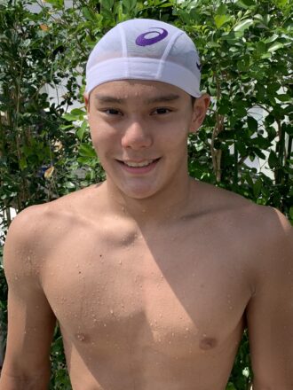 ひとつは、男子100m自由形。50mで日本中学新記録を樹立していた松山育(文の里)が、この種目でも力を存分に発揮。予選で50秒77で大会記録を更新すると、決勝では特に50mを折り返してからの伸びが素晴らしく、予選の記録をさらに上回る50秒62の大会新記録を樹立して今大会2冠を達成した。