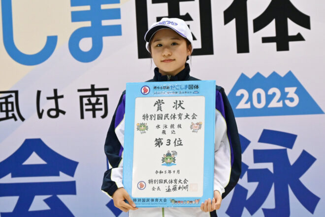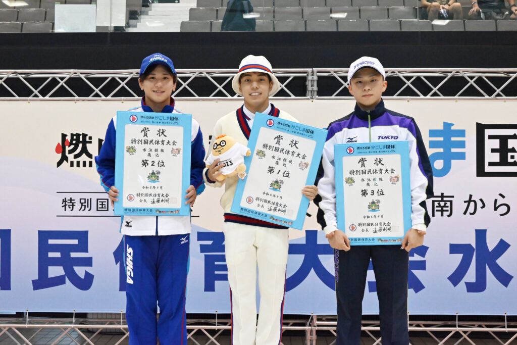2位には、世界水泳選手権代表の榎本遼香(栃木県)が277.60で続き、3位には高飛込で1位となった金戸凜(東京都)が236.65で入った。