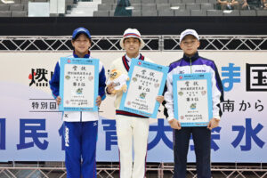 これで飛込競技は全ての競技を終了。飛込の団体得点順位は、総合で茨城県がトップ。高知県が2位、石川県が3位となった。一方で女子総合は高知県が1位、群馬県と福岡県が同率で2位という結果であった。