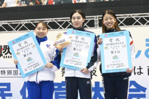 そのほか、成年女子400m自由形は競泳にOWSに活躍を続けている梶本一花(大阪府)が4分10秒85で1位に。