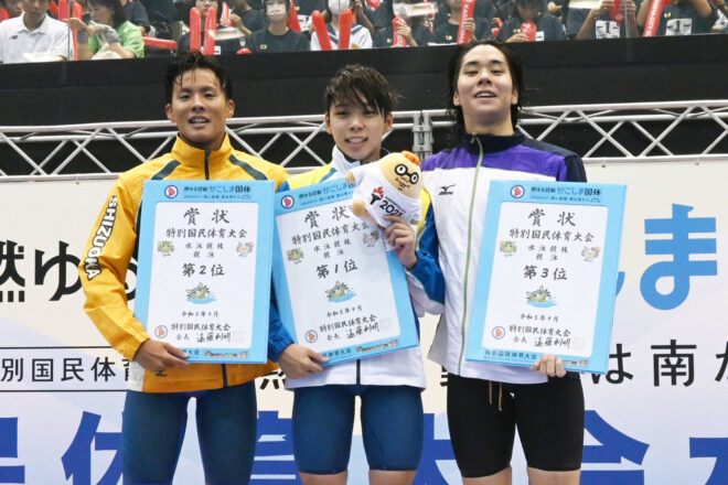 ASからスタートし、水球、OWS、飛込と続いてきたかごしま国体も、いよいよ最後の競技、競泳競技が開幕。初日から新記録が4つ誕生し、競泳競技は好スタートを切った。