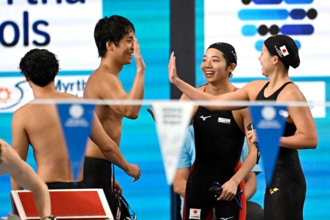 混合4×100mメドレーリレーには、加藤理、廣島偉来、飯塚千遥、そして池本凪沙の4人で挑み、予選を3分46秒92の6番手で決勝へ。