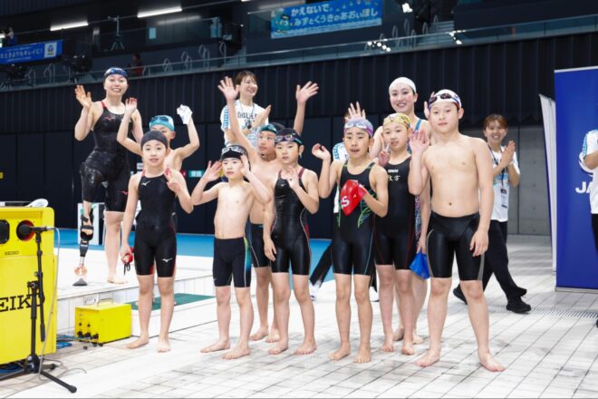 普段とは異なる環境に加え、多くの観客に見守られる中での挑戦に、子どもたちは緊張した面持ちを見せていた。しかしスタートすれば、それぞれが自分のベストを尽くし、力強く泳ぎ切った。レース後には、やりきった達成感と満面の笑みに、この経験が大きな自信につながったことがうかがえた。会場からも温かい拍手が送られた。