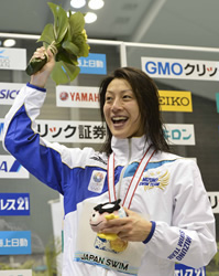 今年最初の主要大会となる大会の第一日目、女子50m背泳ぎでロンドンオリンピック銅メダリストの寺川綾選手(ミズノ)が26秒05の日本新記録を樹立して優勝。