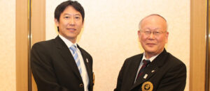 新会長鈴木大地氏と前会長佐野和夫氏が、会長交代の固い握手を交わました。
