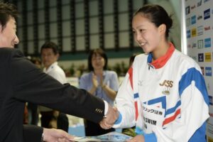 昨年から好調を維持し、3月のオーストラリア遠征では200m個人メドレーで日本記録を更新した渡部香生子選手(JSS立石)は、今大会も絶好調。100m平泳ぎの予選から1分06秒96の日本高校新記録を樹立すると、決勝では1分06秒53までタイムを縮めました。