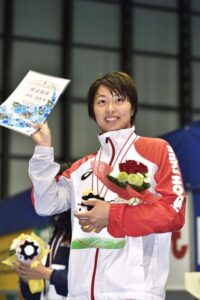 最初の決勝種目となった、男子1500m自由形。日本選手権では、15分を切りながらも派遣標準記録に惜しくも1秒33届かなかった山本耕平選手(ミズノ)が雪辱を果たしました。