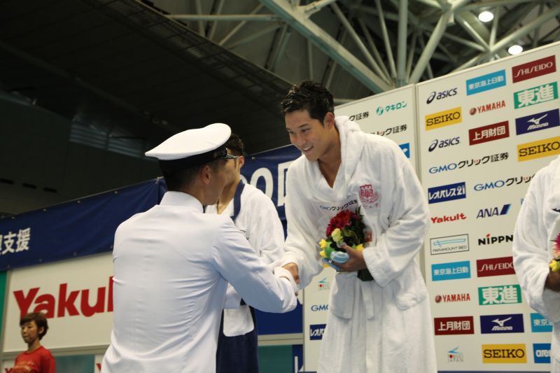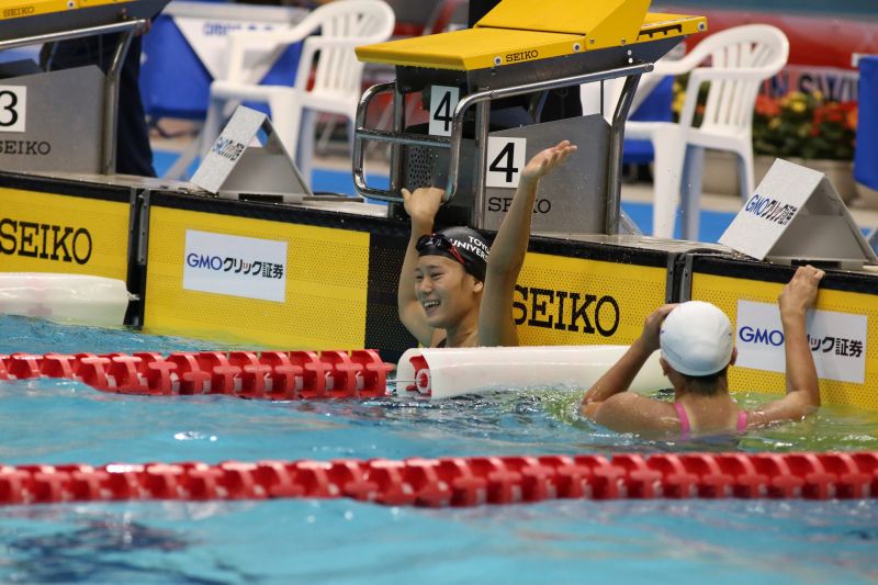 そのほか、男子50m自由形は中村克選手(早稲田大)が22秒36で、女子400m自由形は和田麻里選手(中京大学)が4分11秒34で接戦を制します。