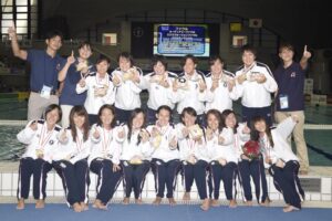 反対に、第1ピリオドで5点を奪い勢いに乗った全日体大は、その後も崩れることなく点を重ねていき、ブルボンウォーターポロクラブ柏崎に付け入る隙を与えません。結果は14対10で、ブルボンウォーターポロクラブ柏崎に一度のリードも許さなかった全日体大が連覇を果たしました。