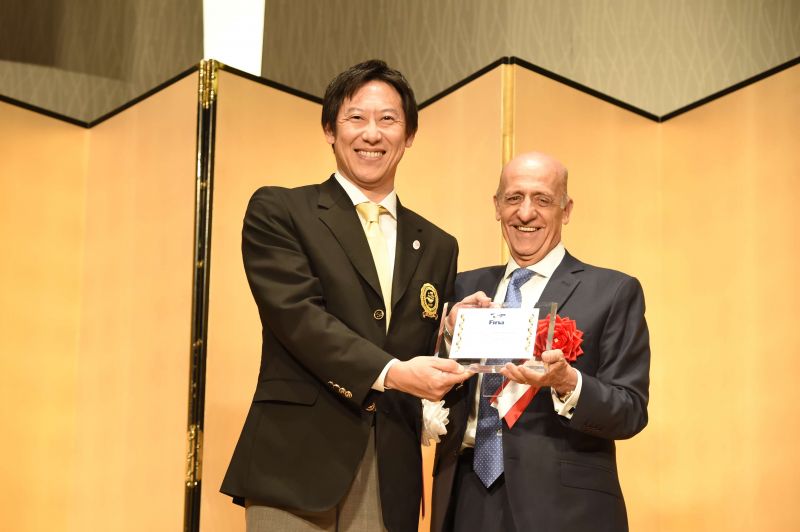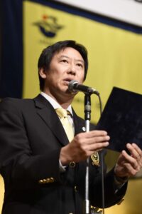 その記念式典では、120名の功労賞受賞者を発表、代表として後藤忠治さまよりご挨拶をいただきました。