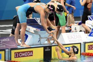 予選からリレーで2つの短水路日本新記録、渡部香生子選手の50m平泳ぎで30秒91の短水路高校新記録が誕生し、さい先の良いスタートを切ったトビウオジャパン。