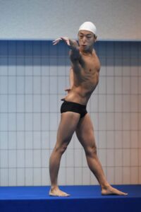 1位は、メンズカップなどの国際大会で過去2回の優勝経験がある、32歳の安部篤史選手(トゥリトネス水泳部)が、77.167で獲得。持ち前の表現力で、他を圧倒しました。2位には井村シンクロクラブの島井競生選手が68.333で入り、大分シンクロクラブのショーン先右選手が61.000で3位となりました。