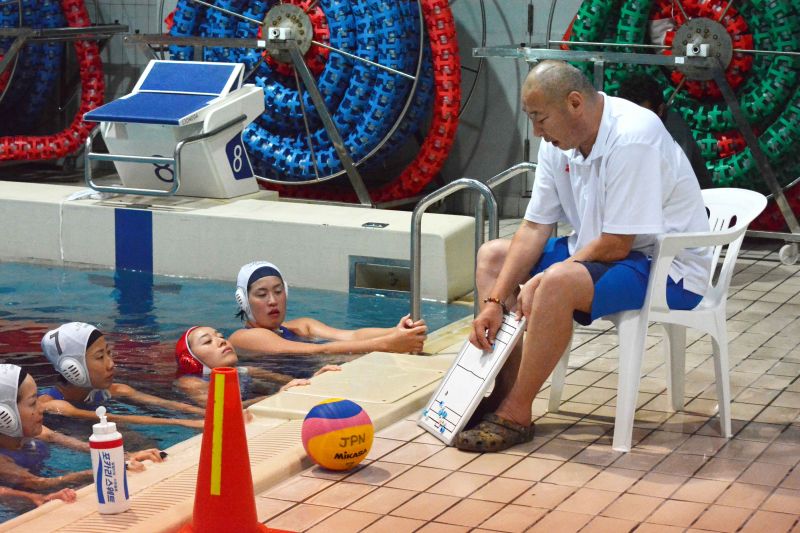 水球の女子チームが世界水泳選手権に出場するのは、2003年バルセロナ大会以来となる12年ぶり。今年から秀明大学の加藤英雄監督体制となり、マンツーマンディフェンスと素早いカウンター攻撃を主とした戦い方にチェンジ。従来のゾーンディフェンスよりも体力が必要なため、練習量を増やして体力アップを図っています。