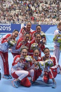 昨日のデュエットフリールーティンではウクライナに敗れて4位だった日本ですが、この日はチーム全員の力を合わせて銅メダルを獲りに挑みました。先に演技を終わらしているメダル争いの最大のライバル、ウクライナは93.7000を獲得しており、日本チームがどのような演技をするかに注目が集まります。