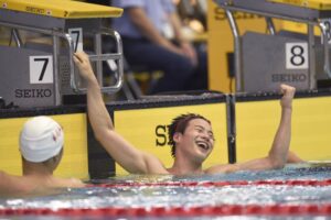 この日の新記録は9つ誕生。うち、短水路中学新記録が2、大会新記録が6、大会タイ記録が1つという結果でした。