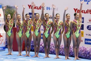 チームテクニカルルーティンのテーマは『弥栄日本』。日本らしい和太鼓も盛り込まれた音楽に乗せて泳ぎ切り、合計92.4360を獲得。しかし、選手たちはあまり納得のいく演技ができなかった様子。
