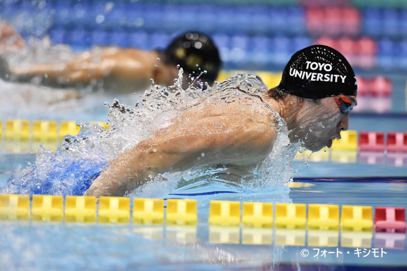 男子100mバタフライ決勝は、リオデジャネイロ五輪の代表で、今大会も実力を見せつけるようなレースで200mバタフライを制した坂井聖人選手(早稲田大学)が出場。ですが、100mが得意な川本武史選手(中京大学)が前半を24秒08で折り返すと、後半に入ってもスピードが衰えません。最終的には、坂井選手に1秒近くの差をつける51秒34の好記録で優勝。大会新記録を樹立しました。