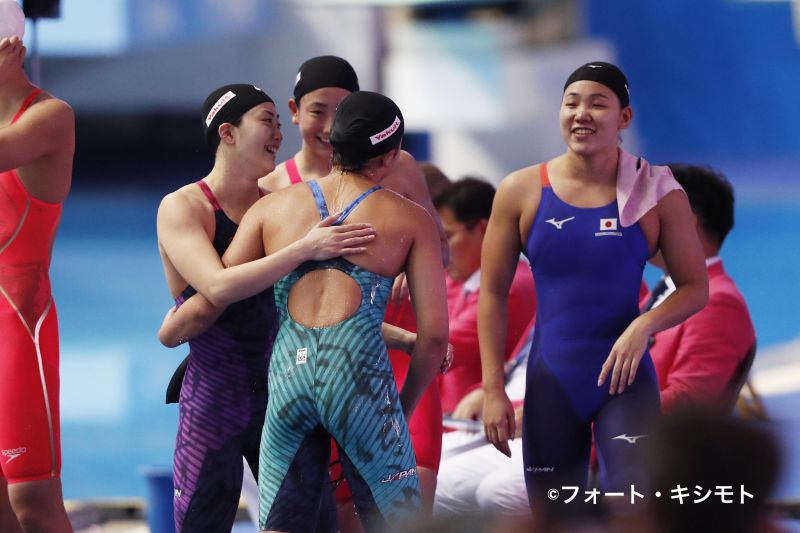 4×200mリレーの決勝は、予選を泳いだ白井璃緒、五十嵐千尋、青木智美、池本凪沙の4人が同じ泳順で臨んだ。前半から攻めたかった、と話す白井は1分59秒88で引き継ぎ、五十嵐は1分58秒81で、青木が1分58秒32で引き継ぎ、アンカーは若手高校生の池本に託す。その池本も、前半を57秒台で折り返す積極性を見せて、1分59秒30でゴール。トータル7分56秒31の8位入賞を果たした。