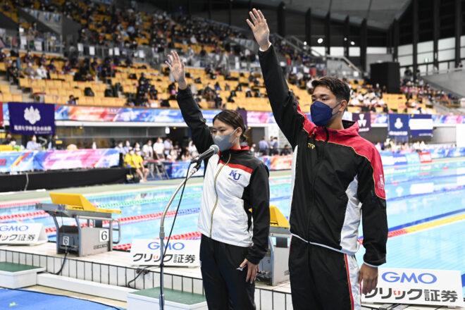 女子50mは池江が連覇、男子は松本が初優勝を果たした(第98回日本学生選手権水泳競技大会)